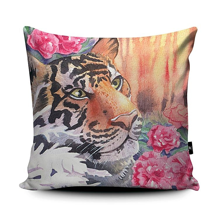 Tiger with Pink flowers by Jo Osborne